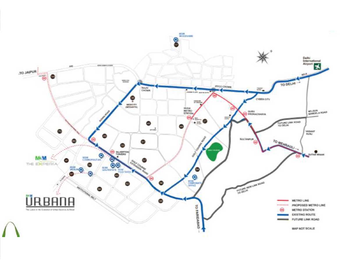 • 6Access to South Delhi via the following link roads: – Existing link via the MG Road connecting South Delhi and Gurgaon; – 90 metres wide road link from Andheria Mor in Delhi to Gurgaon-Faridabad Road